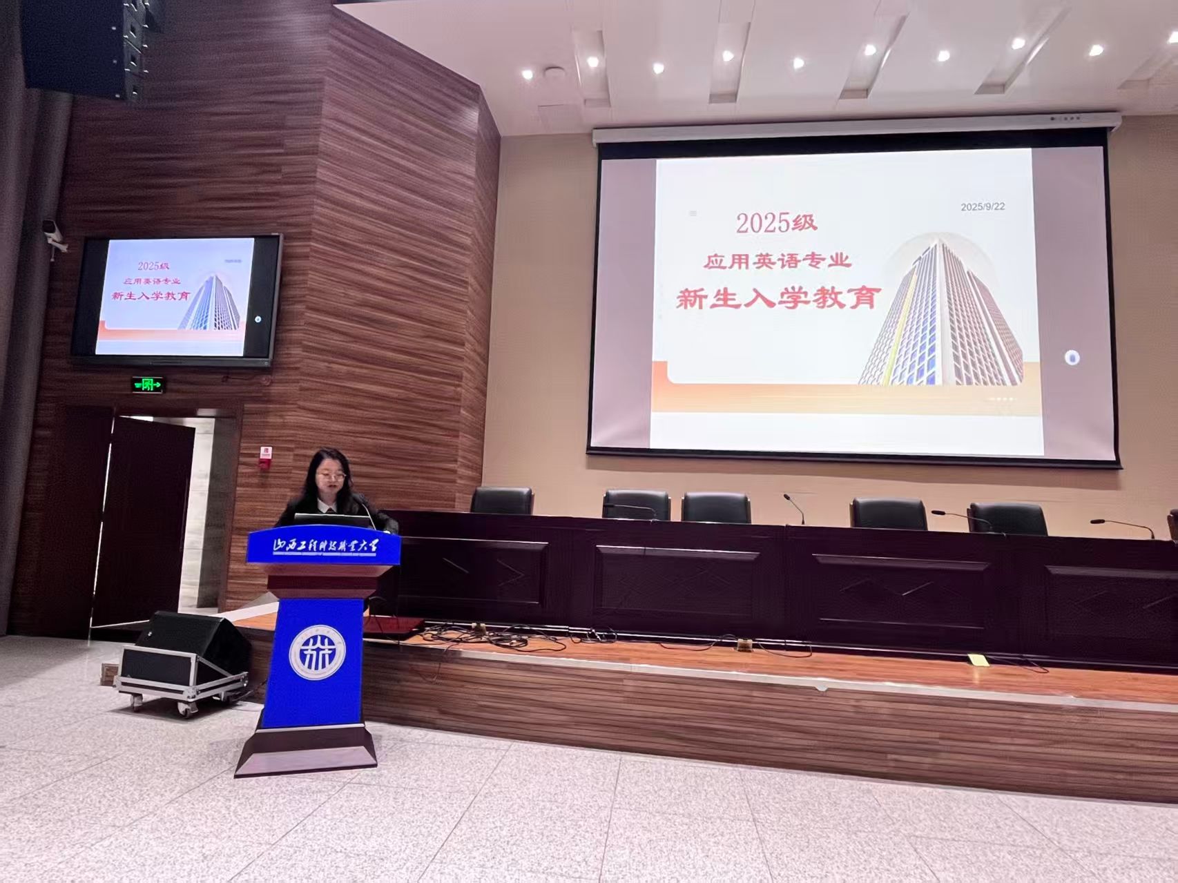 为帮助新生快速了解专业教学要求、适应大学生活,9月23日下午,外国语学院召开2025级新生入学教育专题会。专题会设两场讲座,分别由应用英语系主任霍燕、基础教研室主任朱红红主讲,应用英语专业全体教师及2025级全体新生参会。