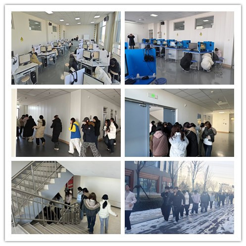 演练前,外国语学院实验实训中心制定了详细的安全应急演练方案,明确演练流程与人员职责,并组织开展前期宣传教育。演练模拟地震与火灾紧急情况,依次完成启动、应急避险、疏散撤离、人员清点及总结讲评等环节,过程紧张有序,达到了预期效果。