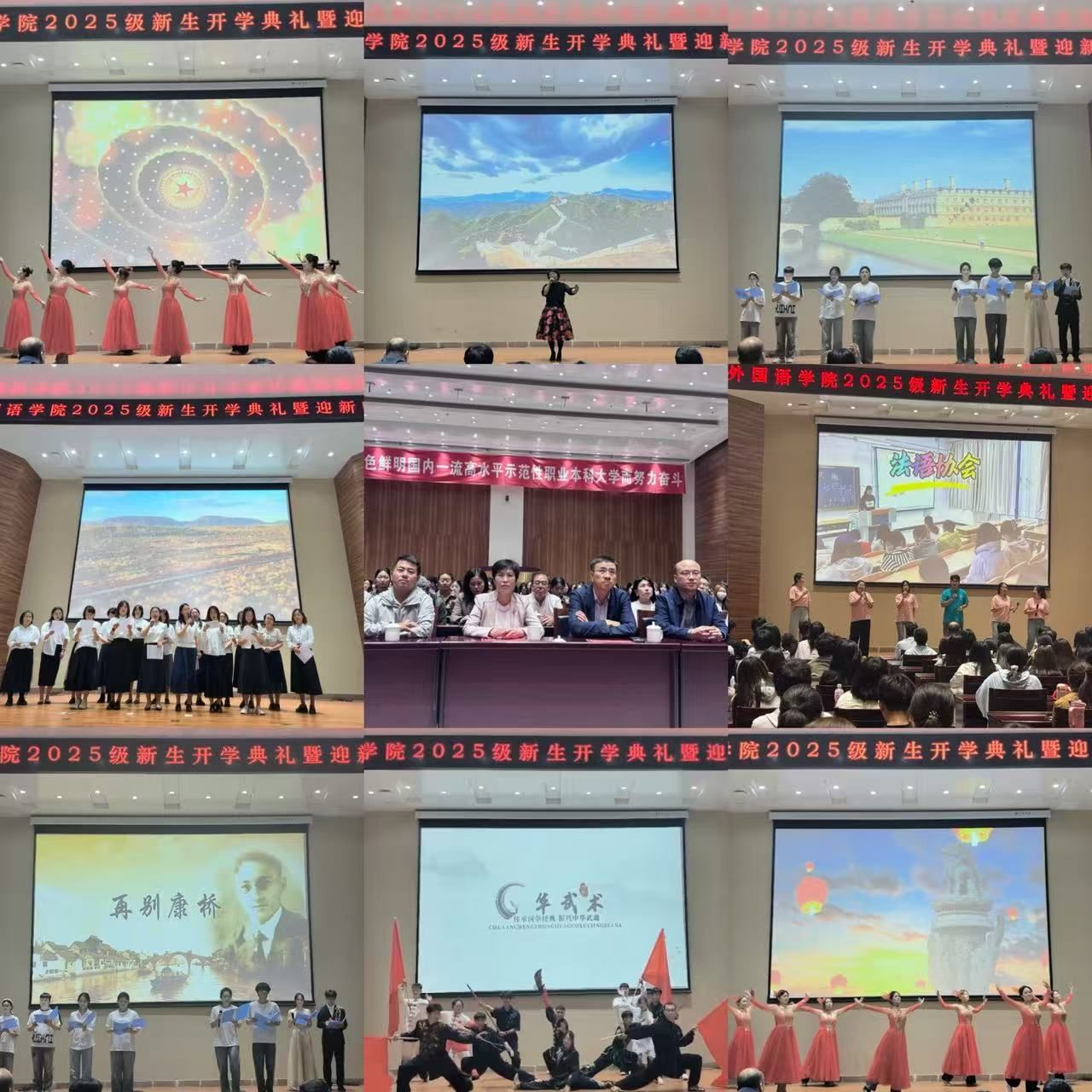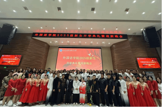 时维九月,秋色宜人,2025年9月19日14:30,外国语学院2025级新生开学典礼暨迎新晚会在行政1号楼报告厅举行。学院领导、各职能部门负责人、教师代表、全体新生及学生代表齐聚一堂,共同开启新生们的大学新征程。