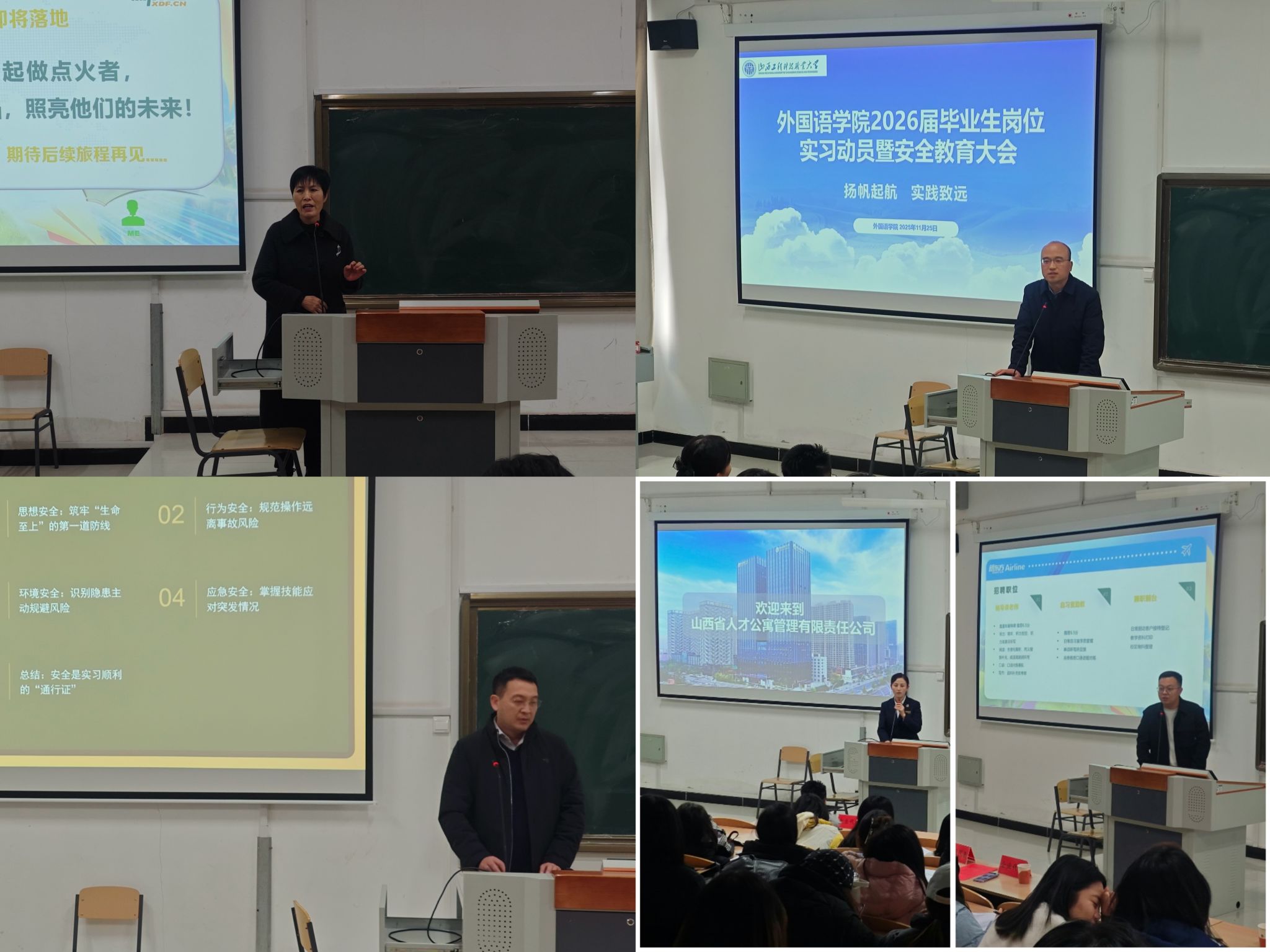 本次大会通过"实习动员-企业宣讲-安全教育-实习指导"四位一体的系统安排,为即将踏上实习岗位的学子提供了全方位的指导。会议的成功举办,不仅体现了学院对实践教学的高度重视,更彰显了校企协同育人的办学特色,为培养新时代高素质外语人才注入了新动能。